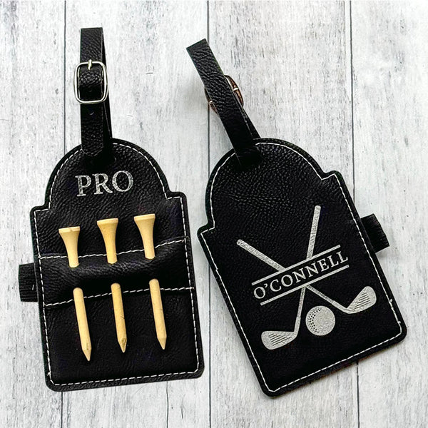 Personalized Leatherette Golf Tee Holder Tags
