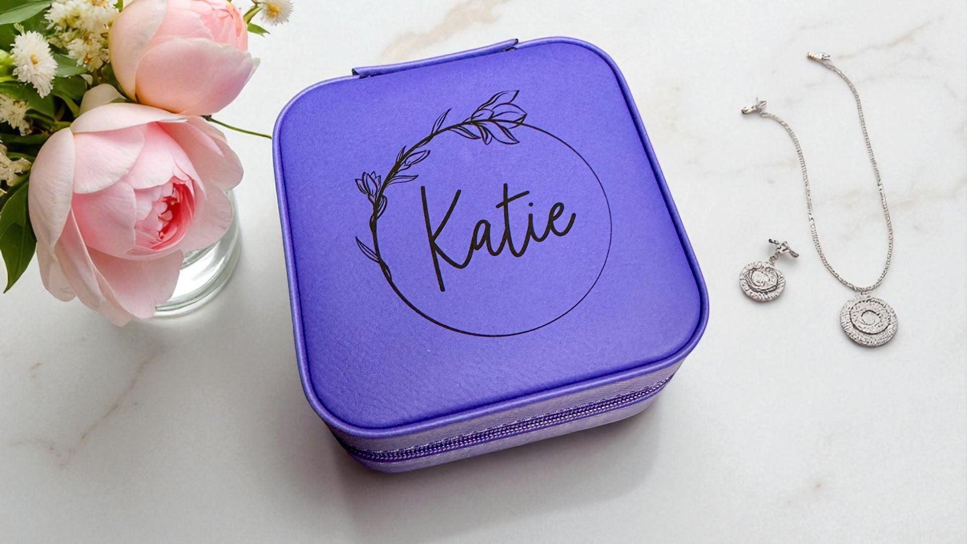 • Personalized (Pre-Made) Items – Necklaces, jewelry boxes, trays, wallets, and similar products are ready to ship quickly. These typically leave our studio within 3 business days.