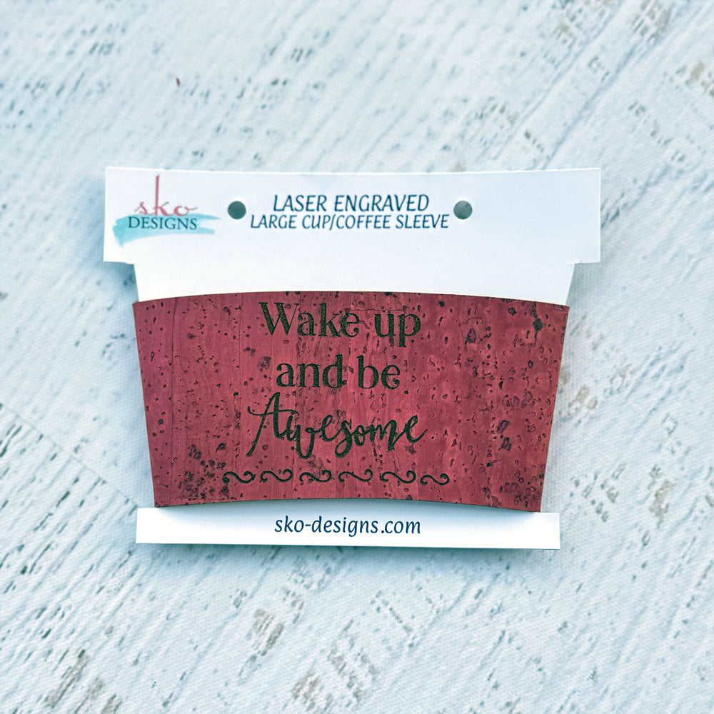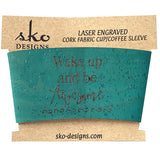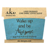 Wake Up & Be Awesome Cork Coffee Cup Sleeve - Reusable Eco-Friendly Cup Holder