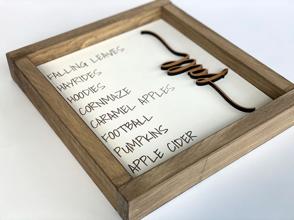 • Metallic Gold Accent: "Fall" text cut from 1/4" MDF and finished in rich Aztec gold