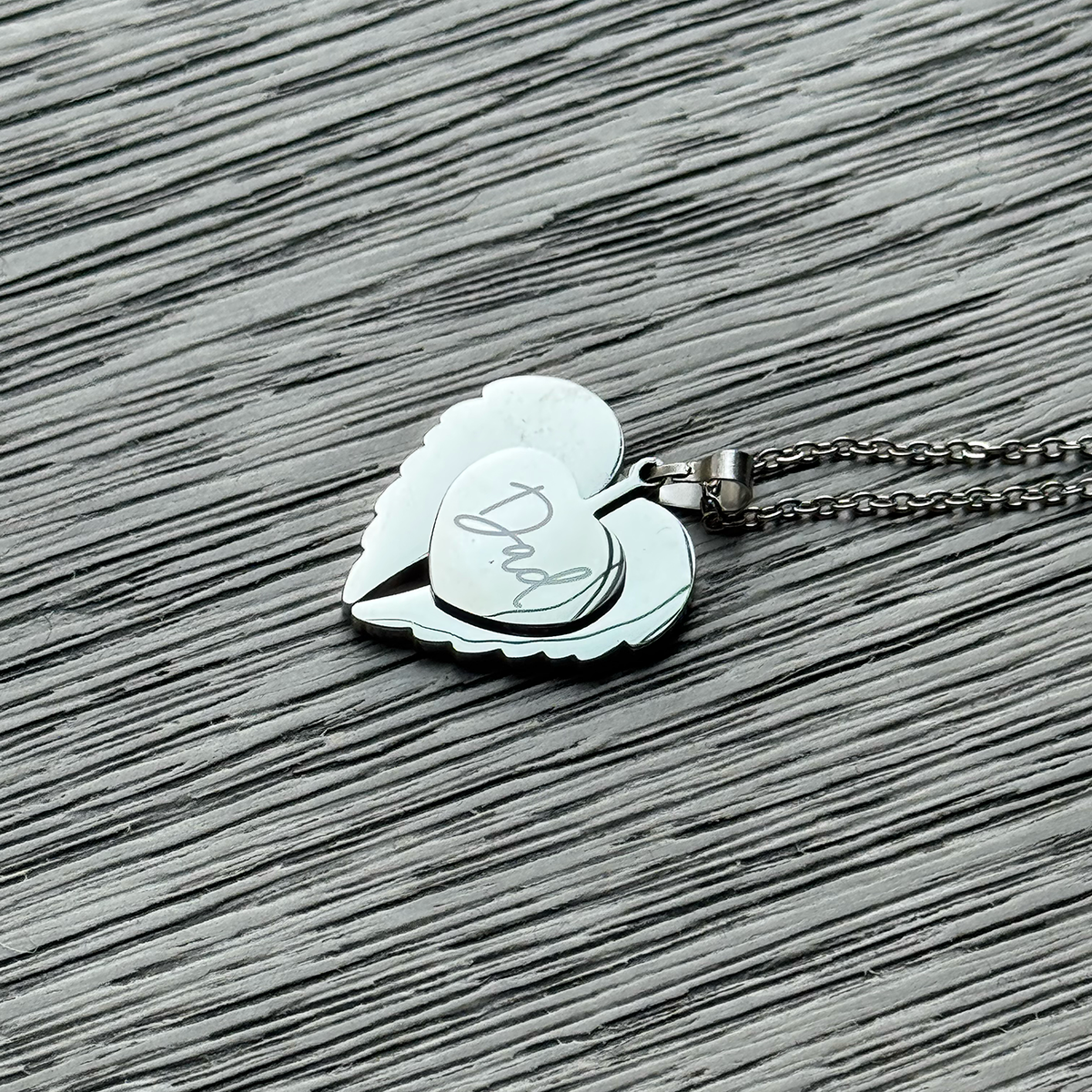 Memorial Wings Hidden Heart Necklace - Personalized Engraved Jewelry