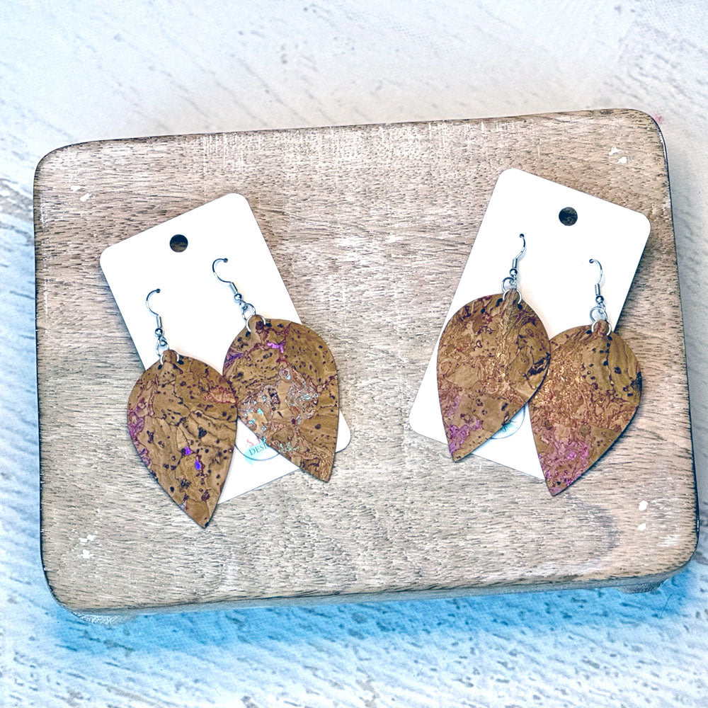 Transform your jewelry collection with these stunning handcrafted cork fabric earrings featuring natural tones with beautiful swirls of pink, blue, and yellow. Each pair is laser-cut and hand-assembled for exceptional quality and attention to detail.