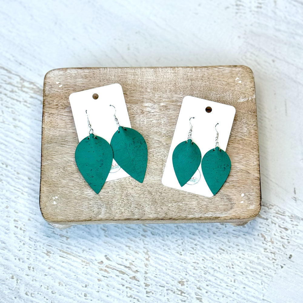 Lightweight Cork Fabric Earrings - Eco-Friendly Teal Statement Jewelry