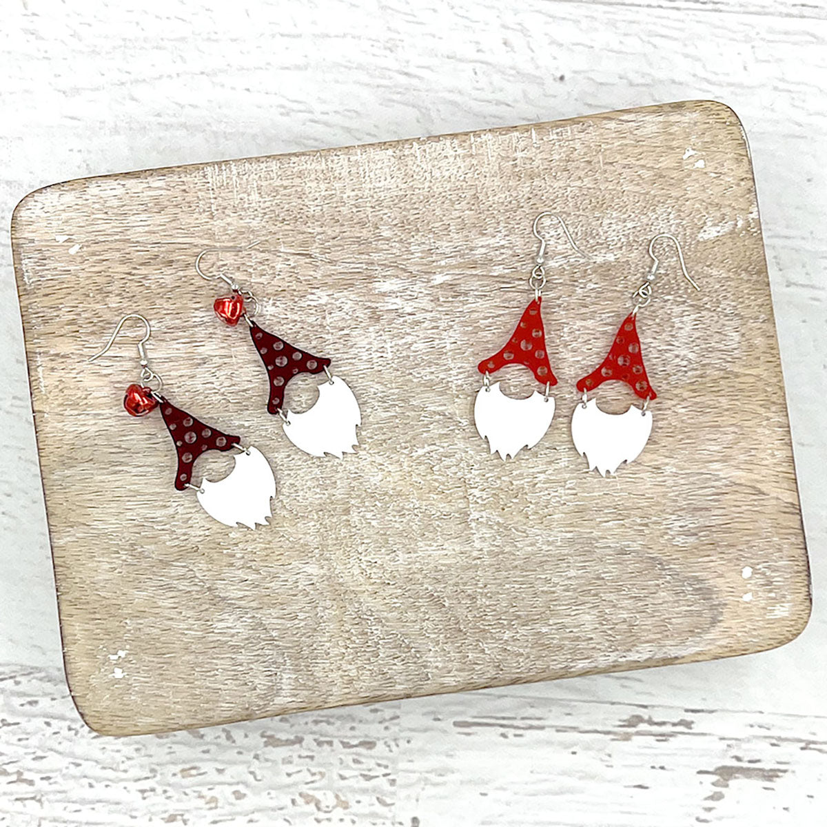 These delightful 2-piece gnome earrings bring festive cheer to your holiday wardrobe. Each pair is carefully laser-cut and hand-assembled for exceptional quality and attention to detail.
