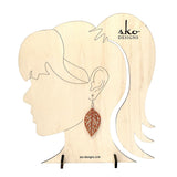 These stunning leaf-shaped earrings capture the essence of autumn with their brilliant orange glitter acrylic finish. Each pair is meticulously laser-cut and hand-assembled for exceptional quality and attention to detail.