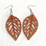Handcrafted Fall Leaf Earrings in Vibrant Orange Glitter