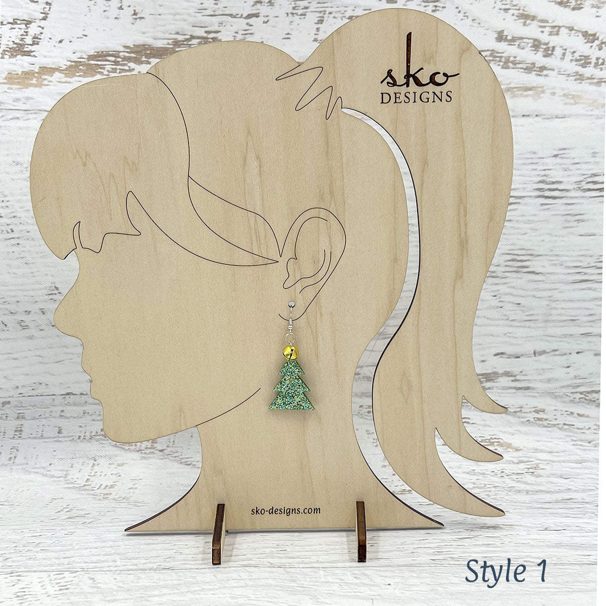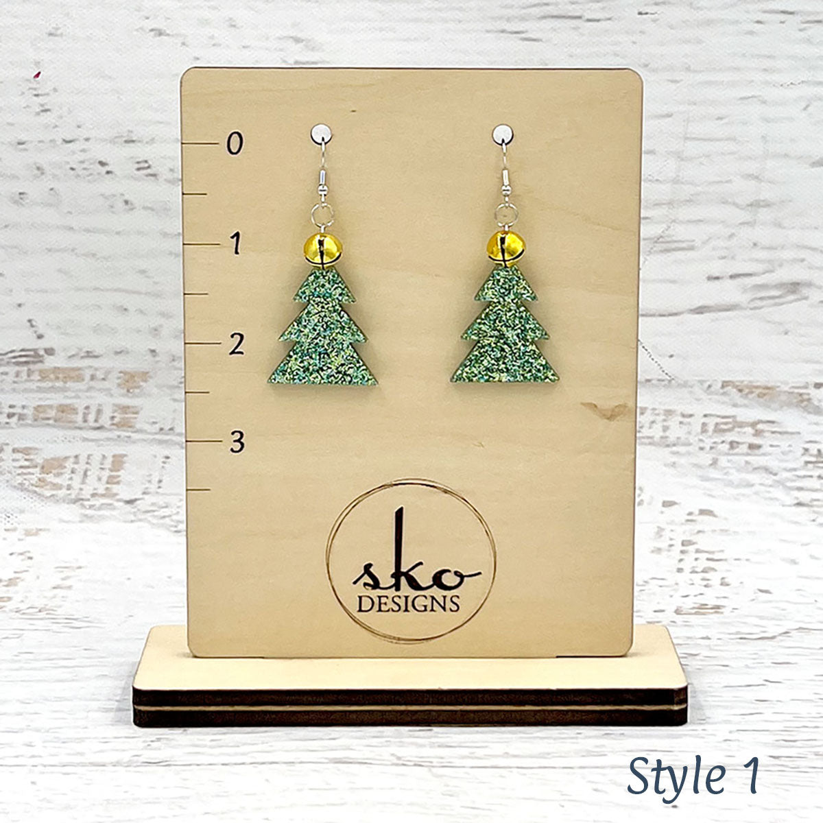 Holiday Tree Earrings - Green Glitter Holiday Jewelry