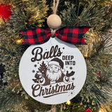 Santa Balls Deep Funny Christmas Ornament | Handcrafted Wood Holiday Decor
