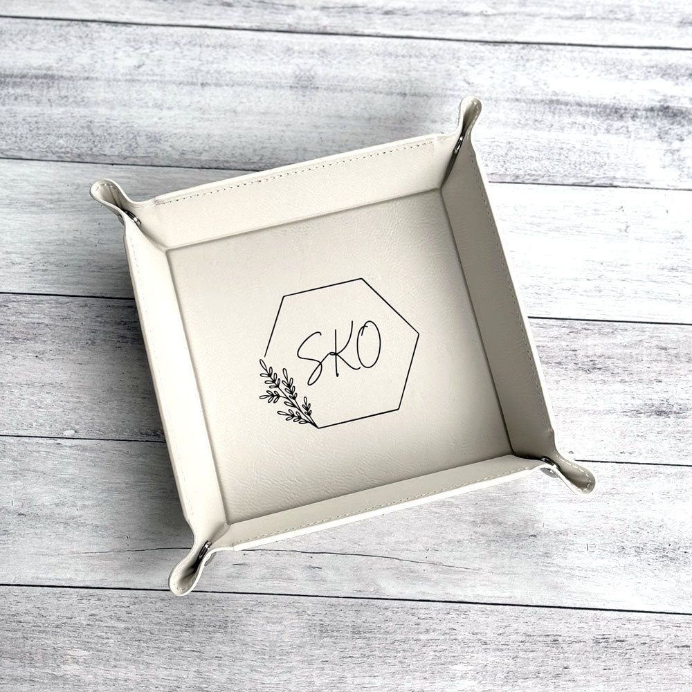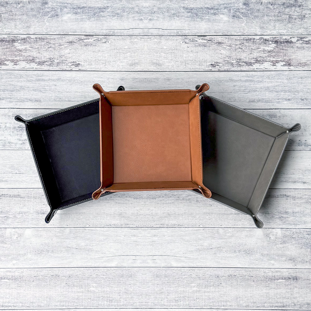 Personalized Leatherette Snap Tray - Custom Engraved Catchall Organizer