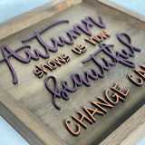 Handcrafted Autumn Wood Sign - Beautiful Change Quote Wall Decor